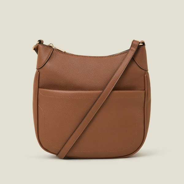 Say hello to your new everyday bag. Designed in faux leather, it features a classic messenger design with two zip compartments and an adjustable strap. Tan