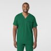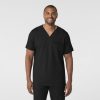 - As a hard-working health professional, your compassion and care transforms the lives of your patients every single day. This men’s scrub top is another way to make a difference. Part of the Wink THRIVE collection, it’s made with 100% recycled materials, so you can feel good while you do good. On double shifts or busy days, count on it to help you handle it all. The athletic design and lightweight and breathable feel keeps you going in comfort. Its modern fit skims the body for a fit that’s not too tight and not too loose. Soft fabric with four-way stretch microfiber polyester is easy to move in and keeps you comfortable through long shifts and busy clinic days. Because lifting and leaning are part of the job, our Flex-n-Reach panels provide extra stretch where you need it most, so you have the freedom to turn patients, maneuver in tight spaces or reach the top shelf of the supply closet. There’s a loop for your badge on the shoulder, and multiple pockets for your cards, pens and phone.